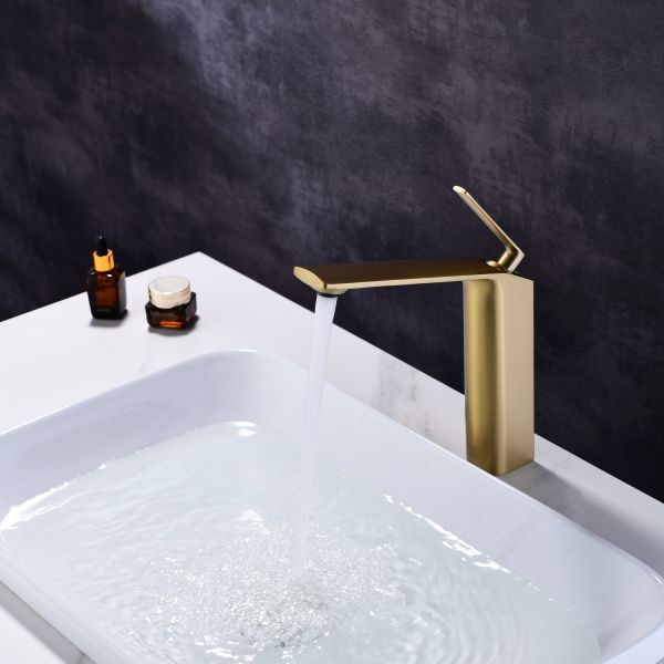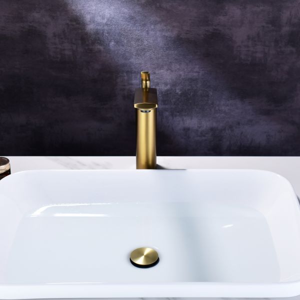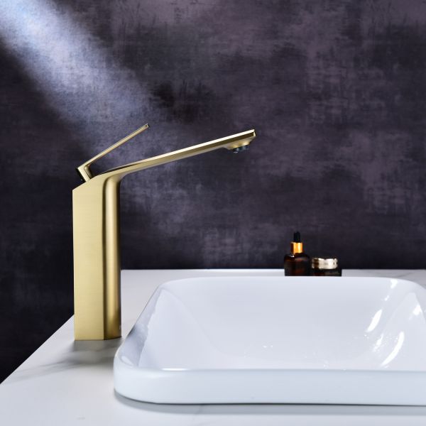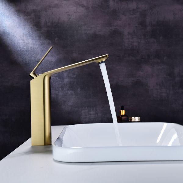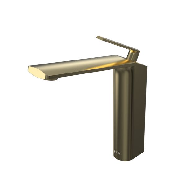 Смеситель для накладной раковины датского производителя Black&White в цвете брашированное золото .Продукт изготовлен из сантехнической латуни – безопасного для здоровья сплава, обработанный обработанный PWD покрытием. Управление давлением и температурой воды происходит с помощью керамического картриджа повышенной пропускной способности.Высота смесителя составляет 22 см., что оптимально для накладных и полувстраиваемых раковин, а излив с возвышением позволяет комфортно мыть руки и минимизировать количество брызг.