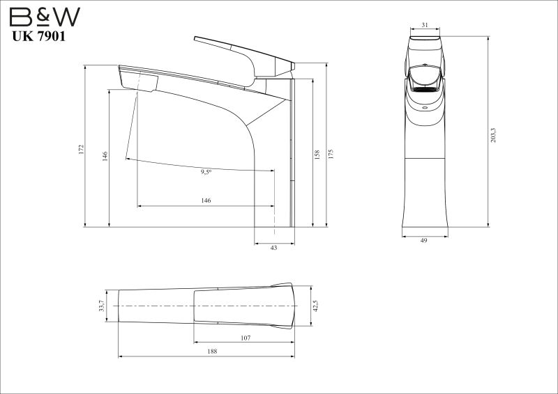 Смеситель для раковины Black&White Universe 7901B с выдвижным изливом чёрный матовый купить