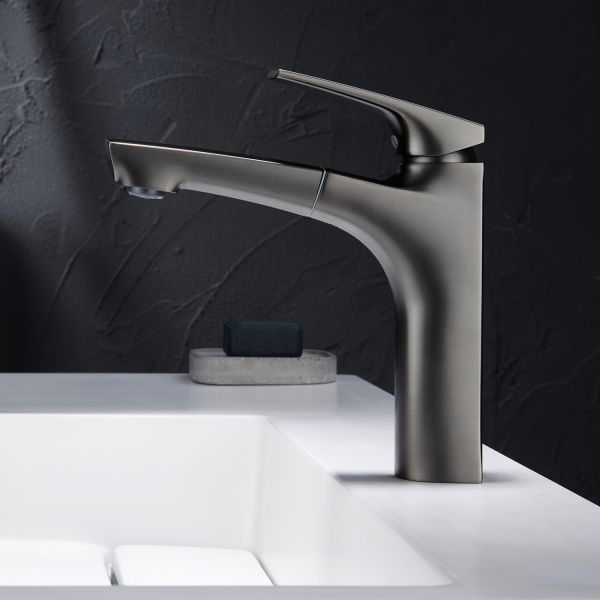 Смеситель для раковины Black&White Universe 7901MG с выдвижным изливом оружейная сталь
