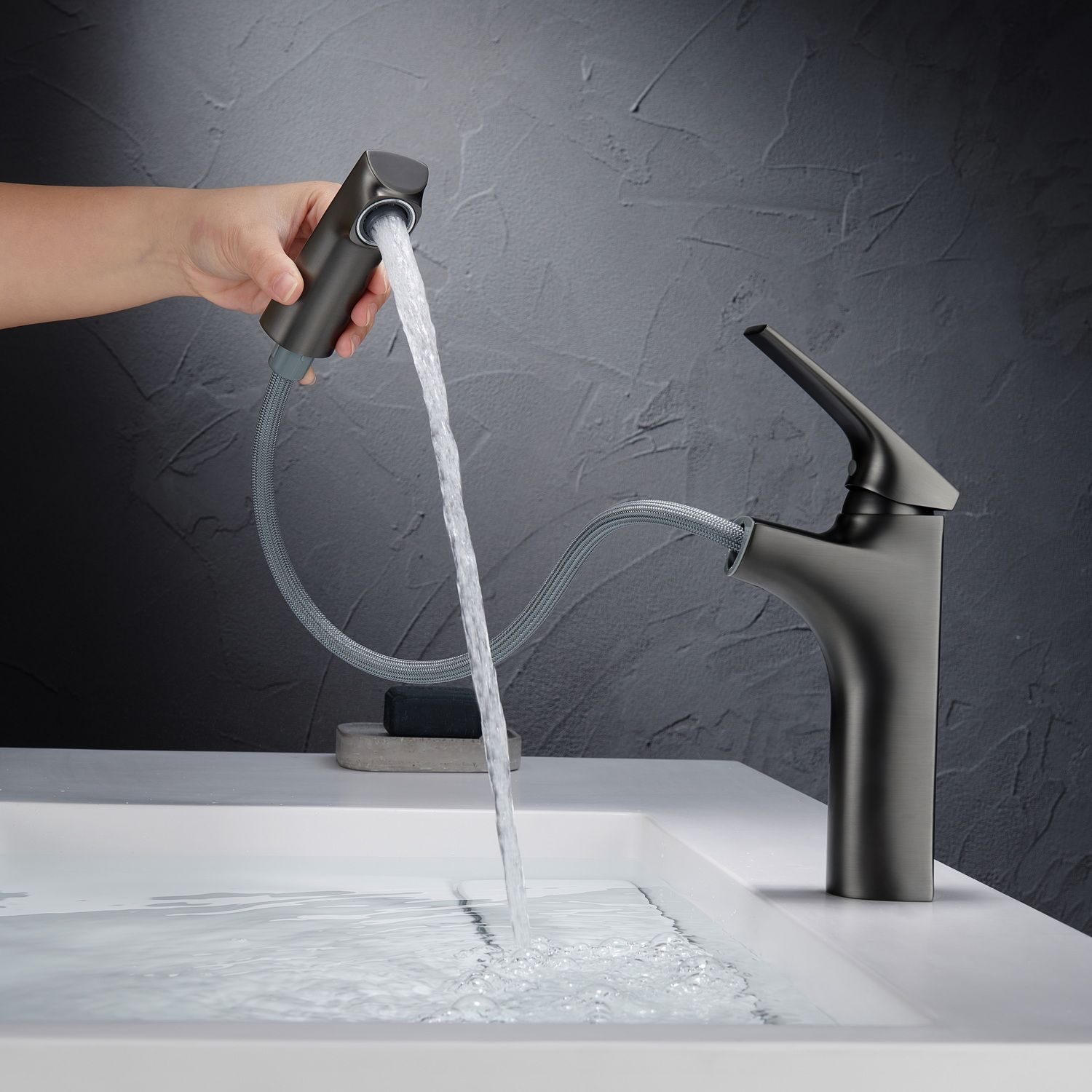 Смеситель для раковины Black&White Universe 7901MG с выдвижным изливом оружейная сталь купить