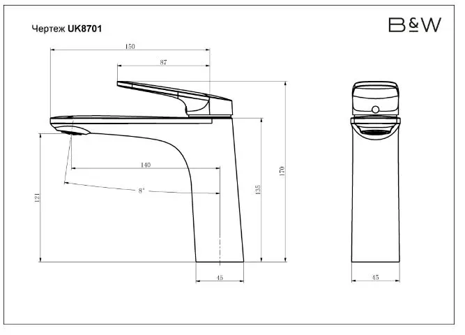Смеситель для раковины Black&White Universe 8701B чёрный матовый купить