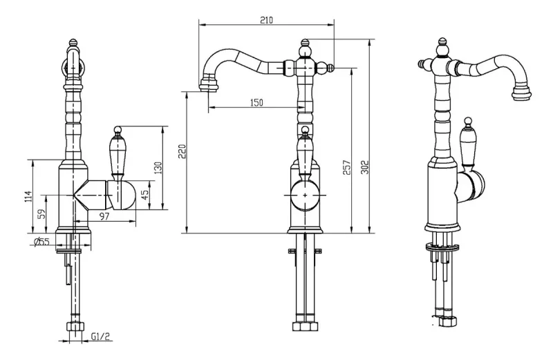 Смеситель Boheme Tradizionale Nero для раковины, высокий, золото, 252 Смеситель для раковины... Подробнее