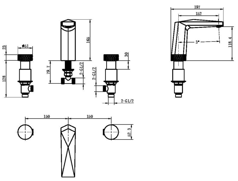 Смеситель для раковины Boheme Venturo 150-BCR-DIAMOND чёрный/хром