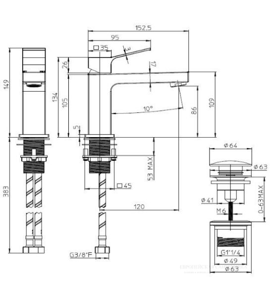 • Высота смесителя: