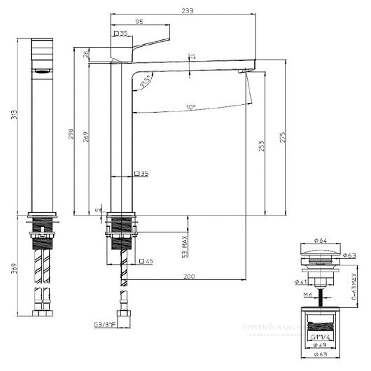 • Высота смесителя:
