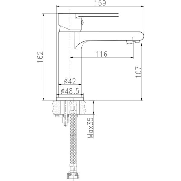 • Высота смесителя: