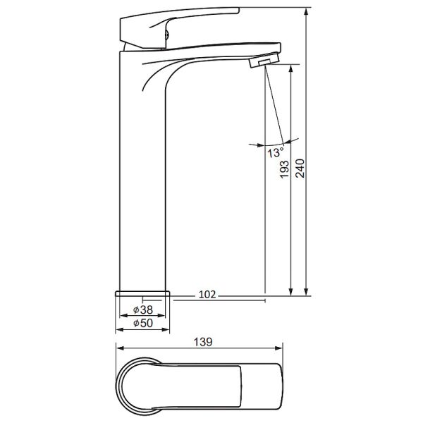 • Высота смесителя: