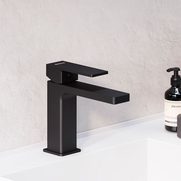 Смеситель для раковины Damixa Gala 530210300 черныйКорпус смесителя 1 шт.; подводка для воды 2 шт.; комплект крепления 1 компл.; инструкция изделия. Матовый черный, умывальник для раковины, строгие прямоугольные формы