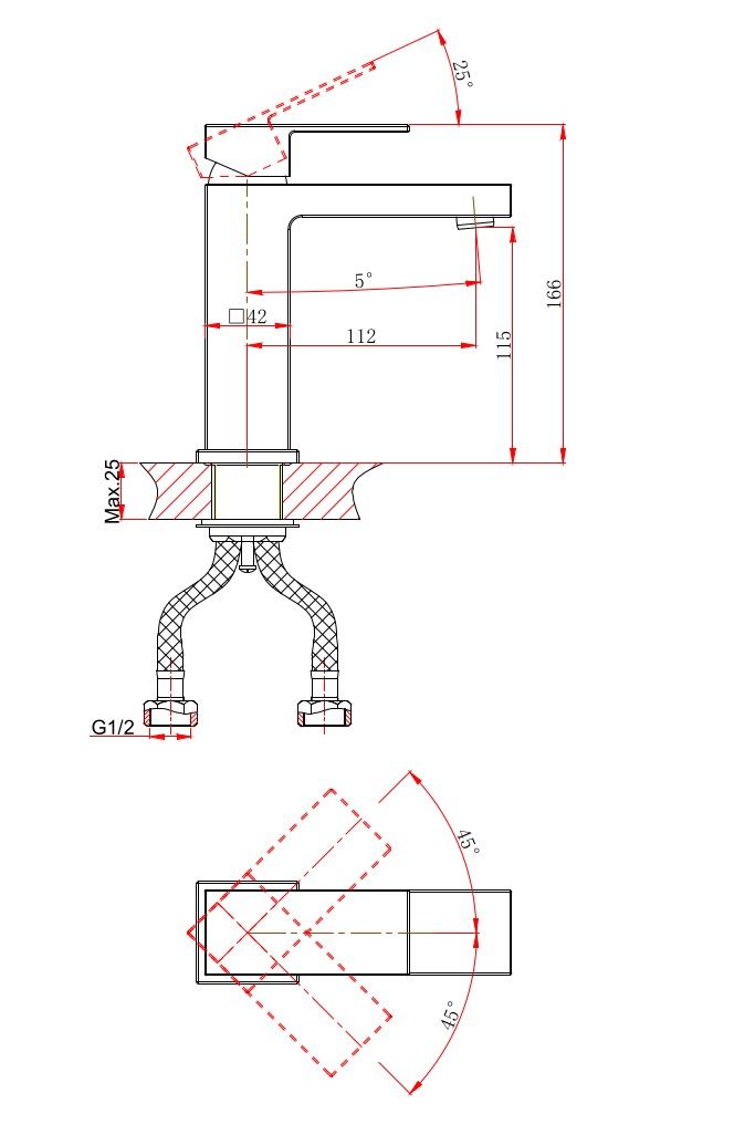 • Высота смесителя: