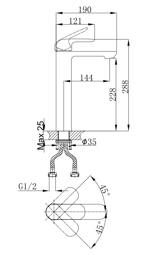 • Высота смесителя: