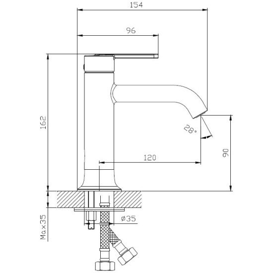• Высота смесителя: