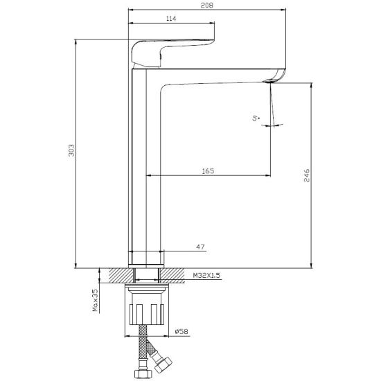 • Высота смесителя:
