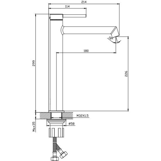 • Высота смесителя: