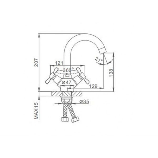 • Высота смесителя: