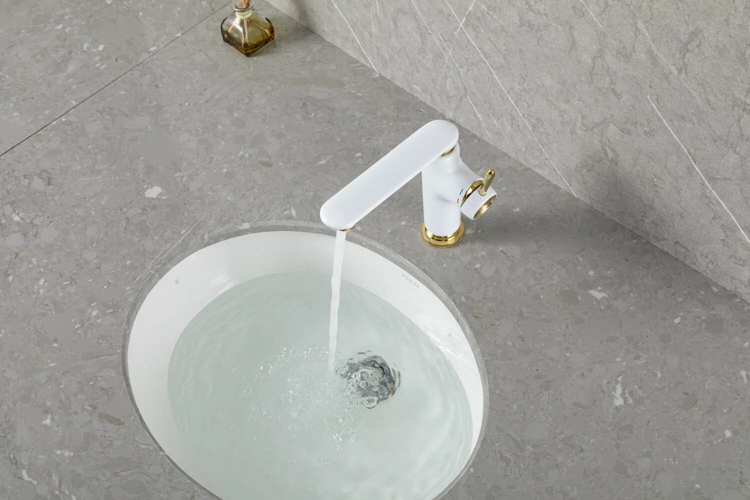 Смеситель для раковины Gappo G1009-83 белый/золото