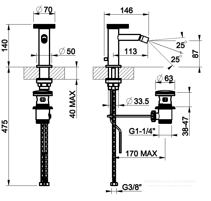 • Высота смесителя: