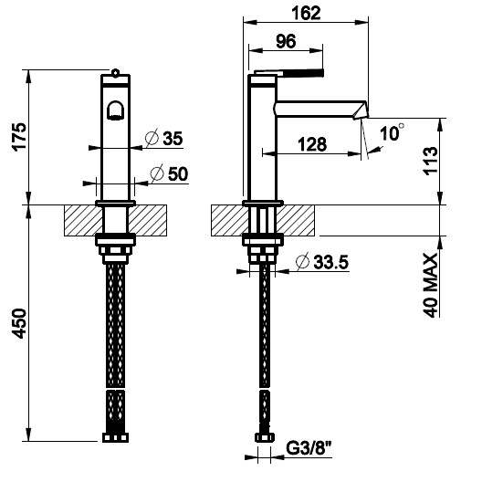 • Высота смесителя: