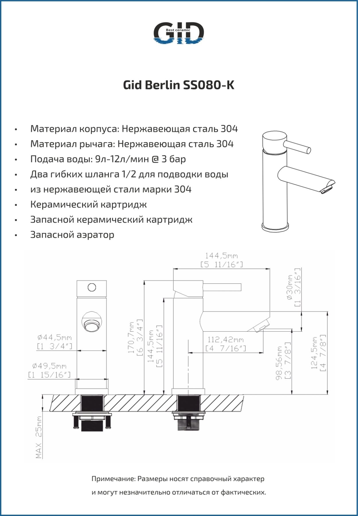 Смеситель для раковины Gid Berlin SS080-CH-K SS080CHK хром купить