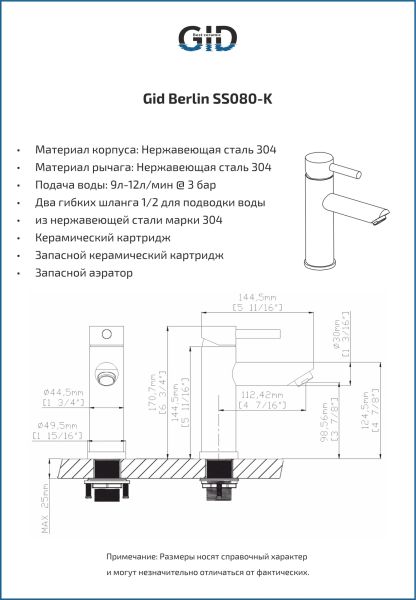 Смеситель для раковины Gid Berlin SS080-CH-K SS080CHK хром