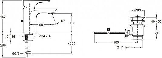 Смеситель для раковины Jacob Delafon Villette E23718-CP• Форма: округлая