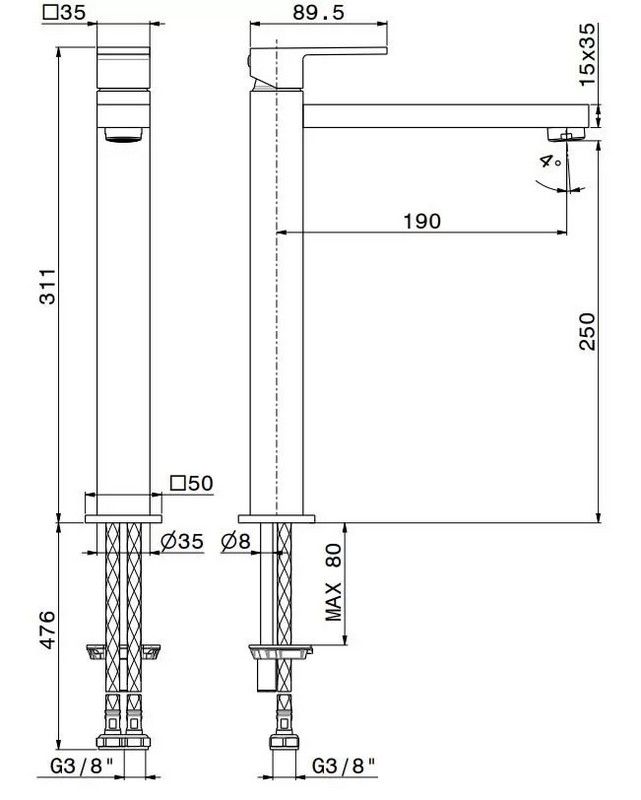 66419KM.01.093 Смеситель для раковины FUTURA однорычажный, высокий, без донного клапана 3/8, матовый