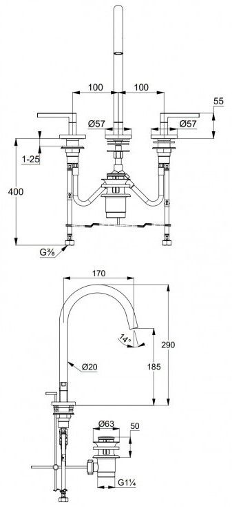 • смеситель на умывальник DN 15