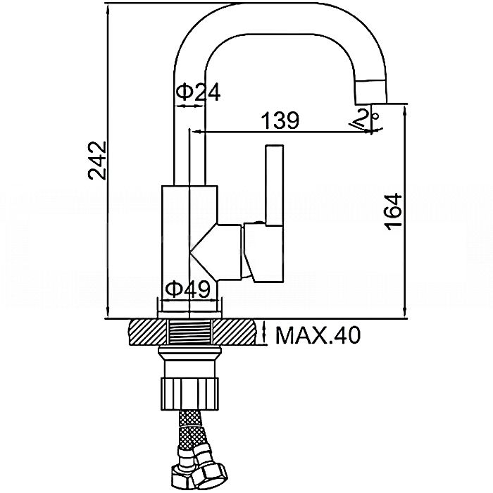 • Высота смесителя: