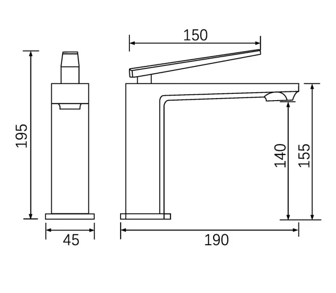 • Высота смесителя: