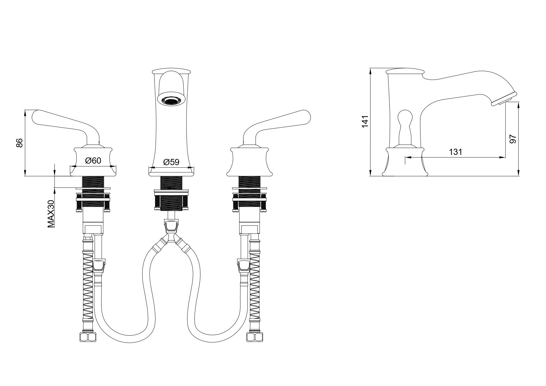Смеситель для раковины на 3 отверстия WONZON & WOGHAND STEAM, Темный графит (WW-88159008-BGM)