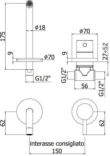 Смеситель для раковины встраиваемый, накладки диам.70мм, излив 175мм, Черный матовыйСмеситель для раковины Paffoni Light LIG006NO70 (с внутренней частью) предназначен для раковины. Своим лаконичным дизайном и колористикой он внесет в интерьер помещения стильный акцент, подчеркнув его своеобразие. Он выполнен из надежного материала латунь, который не окисляется, а потому прослужит верой и правдой. Изделие является оптимальным примером сочетания высокого качества и привлекательной цены. Управление в смесителе предусмотрено однорычажное, что отвечает пожеланиям любителей такого типа смесителей. Высокую жизнеспособность и основательность смесителю гарантирует керамический картридж, отличительной чертой которого является продуманная конструкция - залог отменной работы в течение продолжительного времени. Не зря гарантия на смеситель – 5 лет, в течение которого производитель Paffoni заверяет в его бесперебойной работе. Форма излива в смесителе - традиционная, а тип - фиксированный. При покупке учтите, что подводка у смесителя жесткая, что важно для его монтажа.