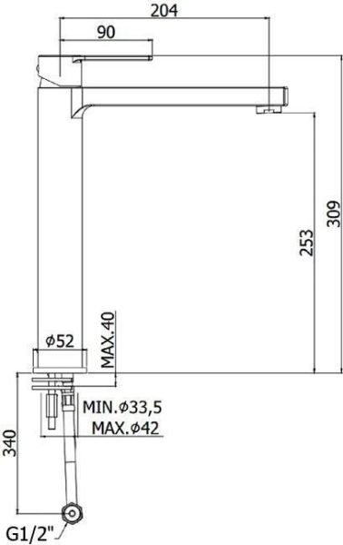 Смеситель для раковины высокий БЕЗ д/к, хромСмеситель для раковины Paffoni Ringo RIN081CR.ВНИМАНИЕ! В монтажной схеме указан европейский стандарт подводки 3/8, мы предлагаем комплект, адаптированный к российским условиям, со стандартом подводки 1/2.Комплектация: