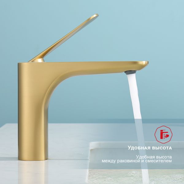 Смеситель для раковины Raglo R21.10.03 золотой сатин