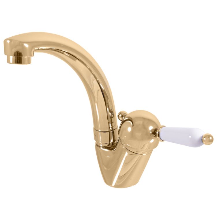 Смеситель для раковины Rav Slezak Labe L506.5/2Z золотоСмеситель Rav Slezak Labe L506.5/2Z для раковины, металлическая рукоятка, KA3502 керамический катридж 35мм KEROX, производство Венгрия