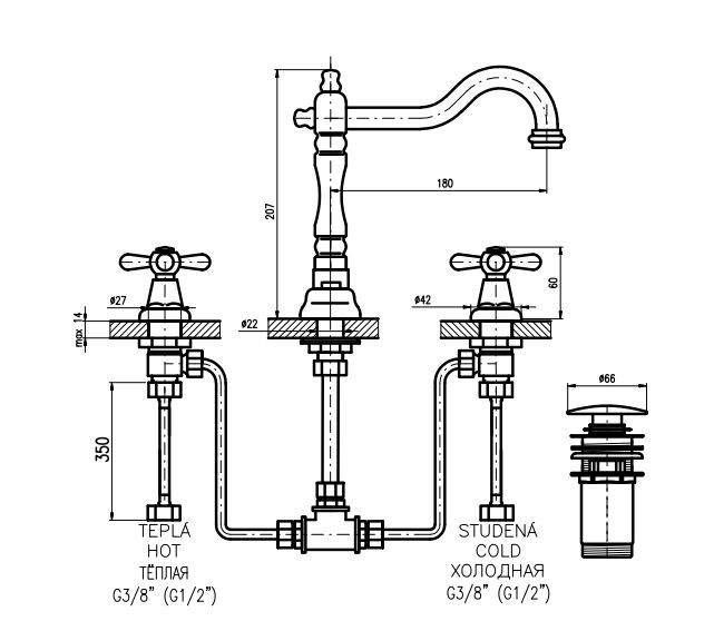 Смеситель для раковины Rav Slezak Morava retro MK332.5Z золото