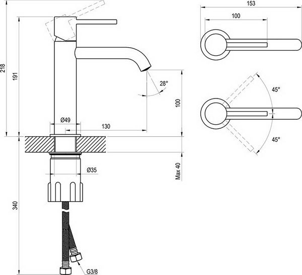 • подходит для всех классических умывальников