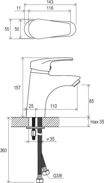 • соединительные шланги: гибкий 350 мм, диаметр G3/8