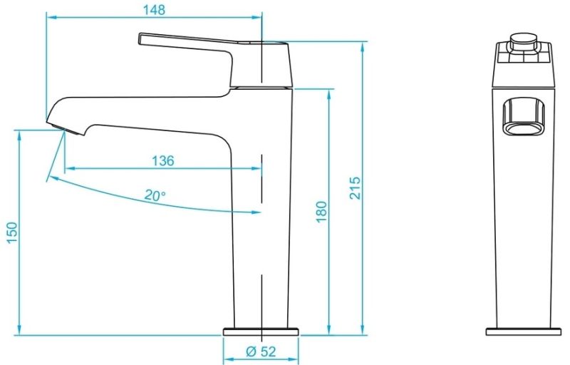 • Высота смесителя: