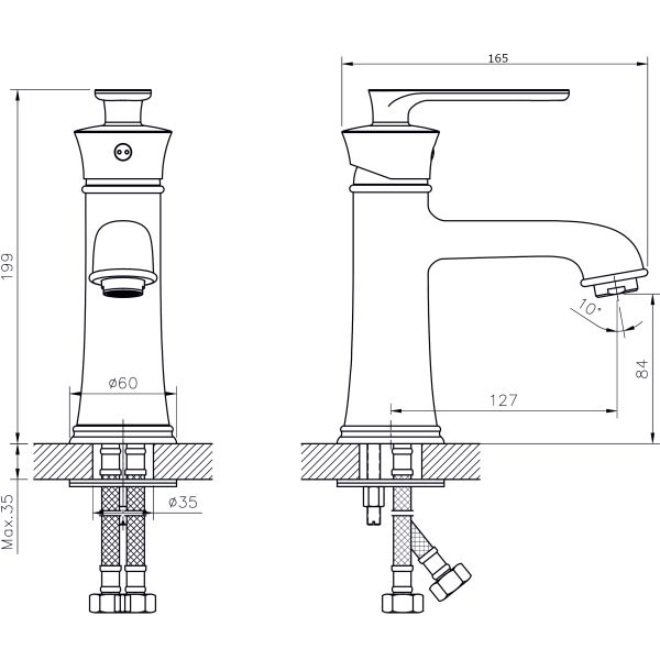 Смеситель для раковины RUSH арт. FL0835-11 с металлической ручкой из коллекции Flores изготовлен из высококачественной латуни и имеет рычажное управление. В смеситель установлен картридж D-35 с керамическими пластинами. Высота смесителя 199 мм. Излив литой, неповоротный, 127 мм. Высота излива до аэратора 84 мм. Аэратор изготовлен из пластика с нержавеющим корпусом, угол наклона аэратора- 10 гр. В комплекте гибкая подводка с латунными гайками 45 см - 2шт, универсальная присоединительная группа для установки на горизонтальную поверхность, фум-лента, индивидуальный пакет, паспорт, гарантийный талон.