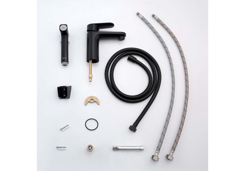 Смеситель для раковины с гигиеническим душем Aquatek Ника AQ1812MB черныйСмеситель