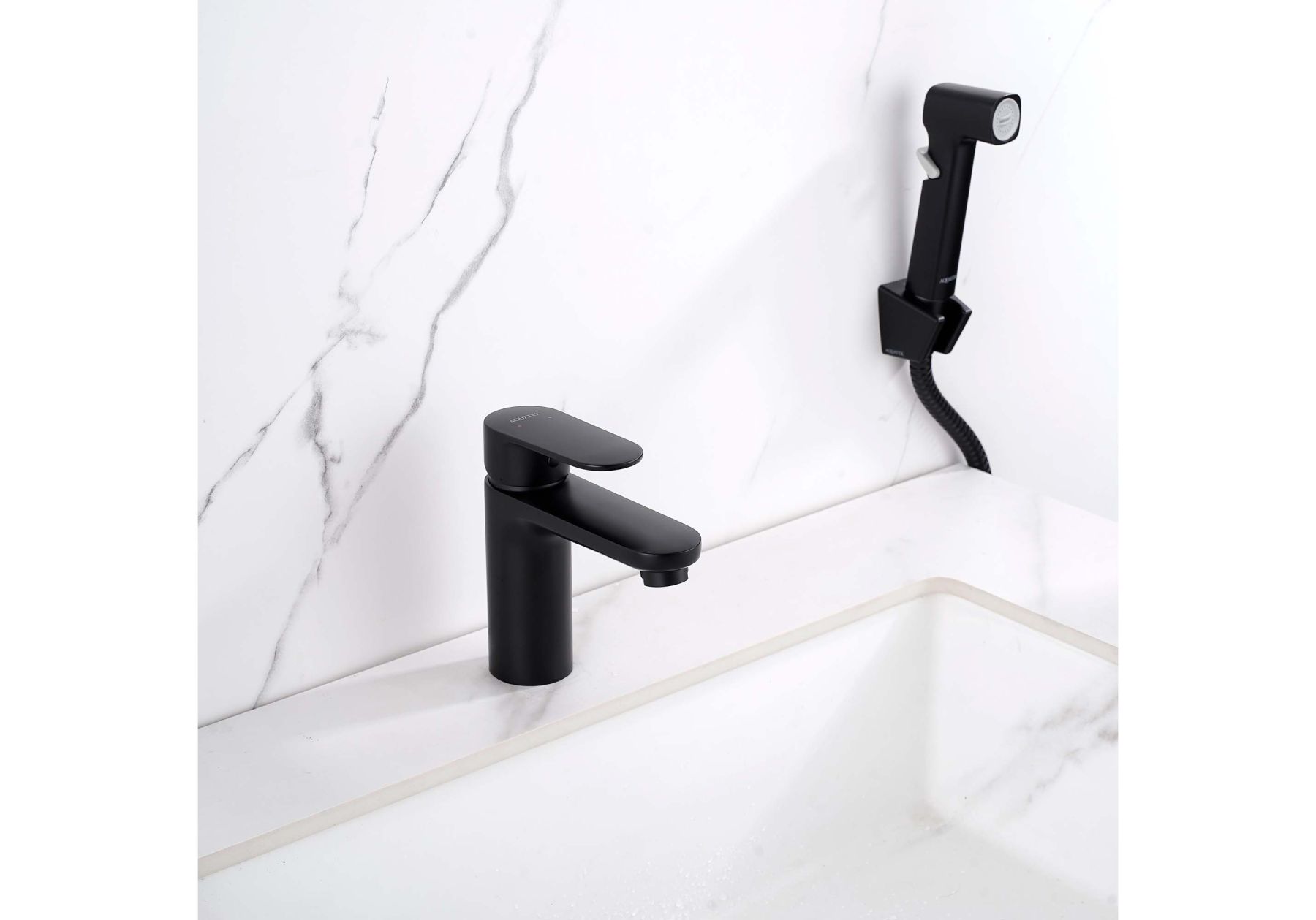 Смеситель для раковины с гигиеническим душем Aquatek Ника AQ1812MB черный