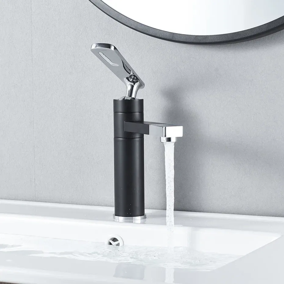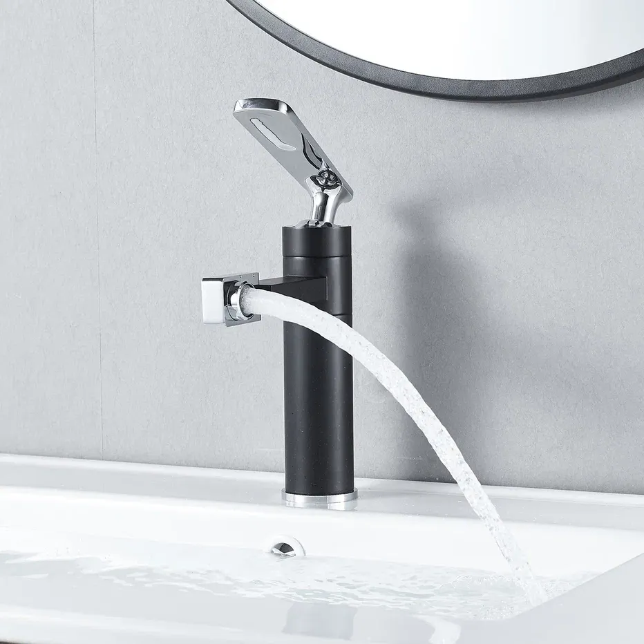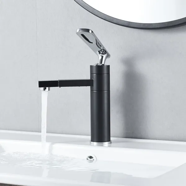 Смеситель для раковины Shevanik S6601H с поворотным носиком чёрный/хром купить