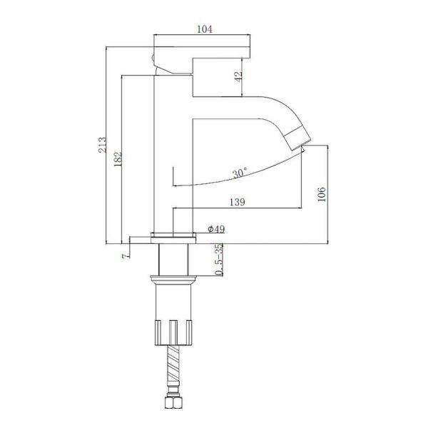 Излив оснащён аэратором, который помогает экономить воду, создавая мягкий и равномерный поток. Крепление смесителя осуществляется при помощи гайки, что обеспечивает надёжную фиксацию на раковине.