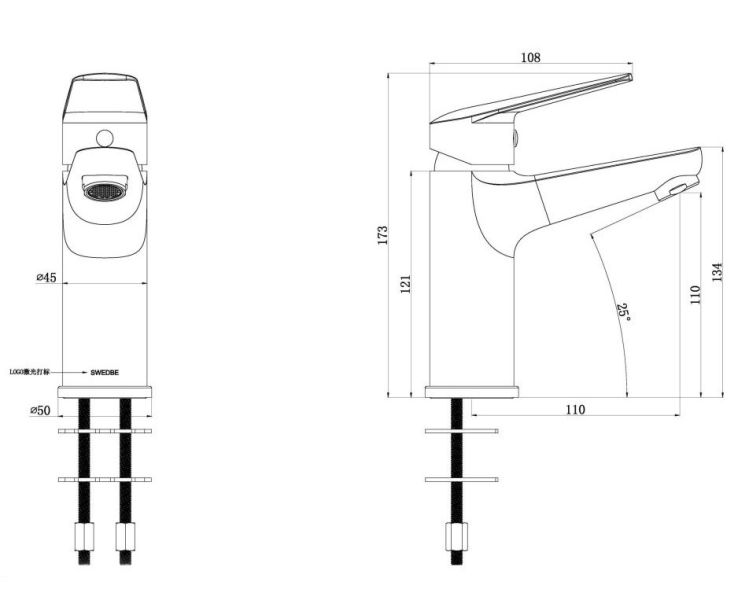 Смеситель для раковины Swedbe Ares 1960 с гигиенической лейкой хром