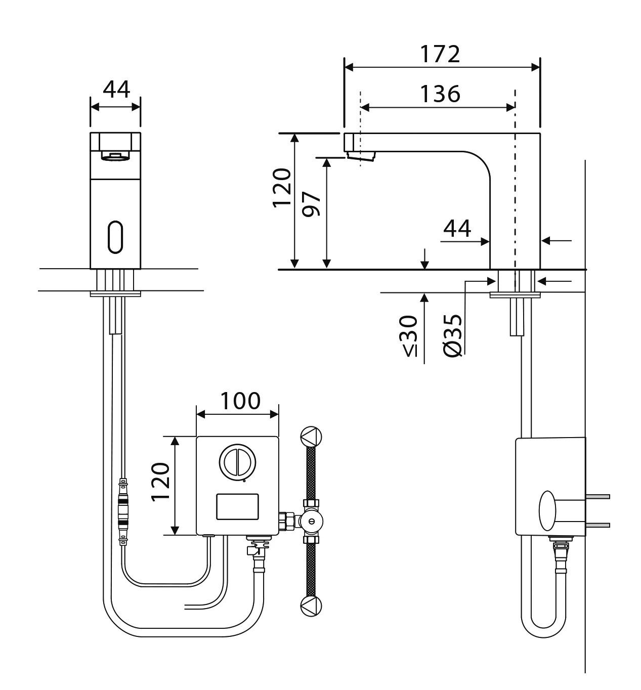 • Высота смесителя: