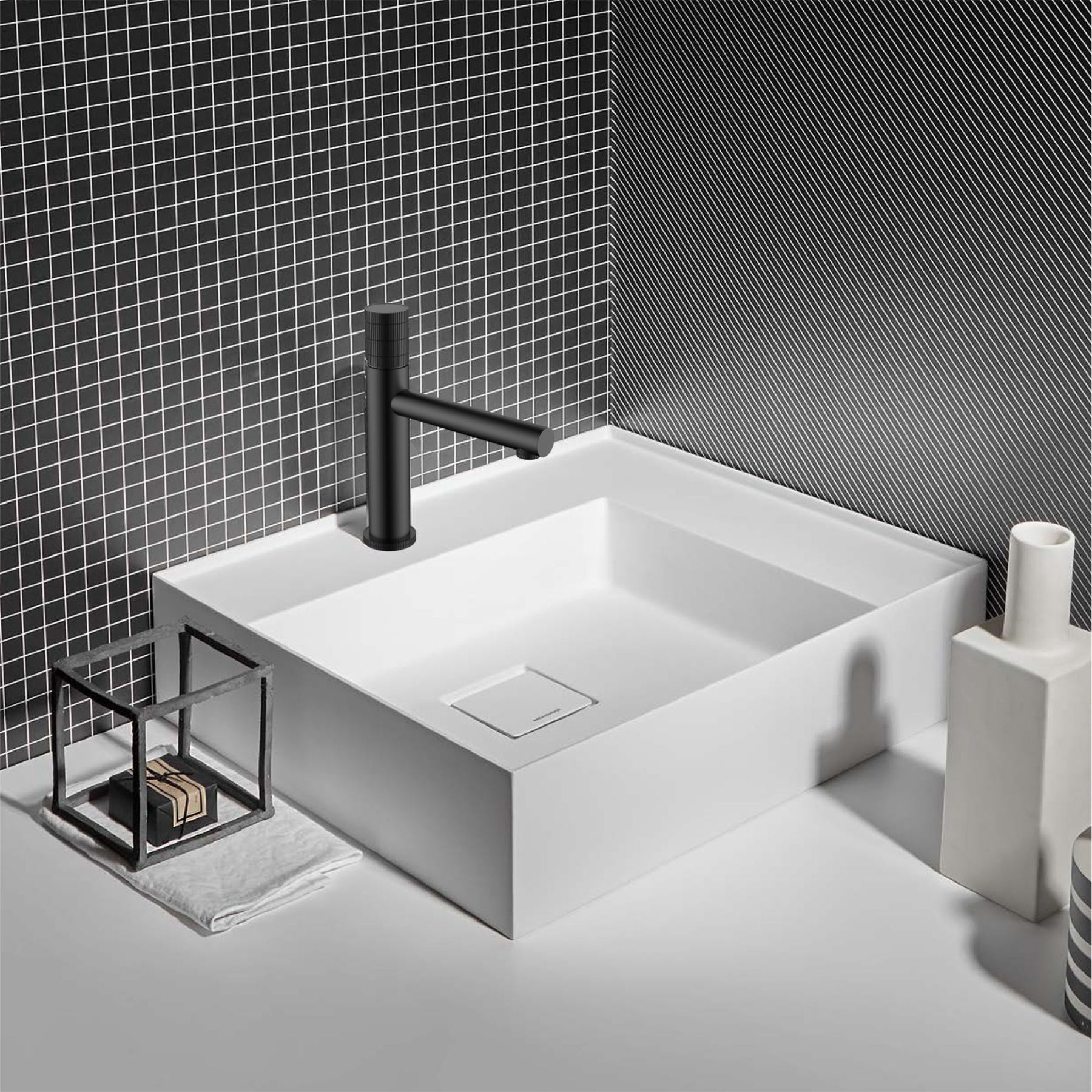 Смеситель для раковины Vincea Groove VBF-4G1MB однорычажный, черный