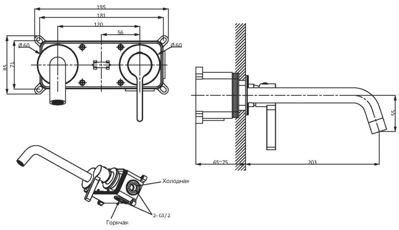 • Высота смесителя:
