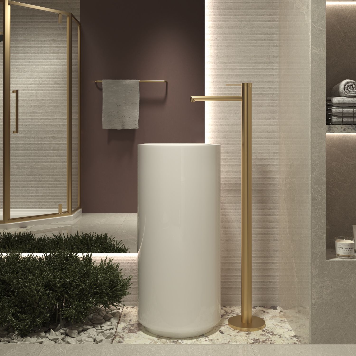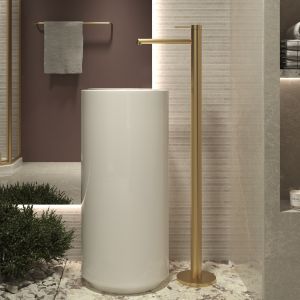 Смеситель для раковины напольный Vincea Rim VFBF-2R1BG, однорычажный, брашированное золото
