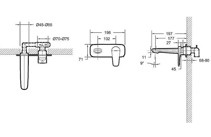 Смеситель для раковины встраиваемый Bravat Source чёрный P8173218BW-ENG купить