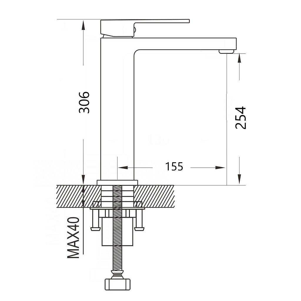 • Высота смесителя: