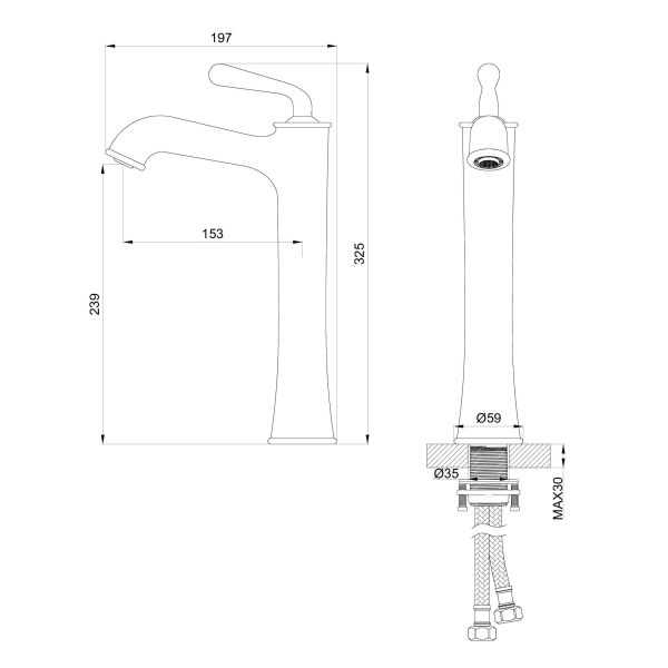 Смеситель для раковины высокий WONZON & WOGHAND STEAM, Брашированное золото (WW-88239008- BG)